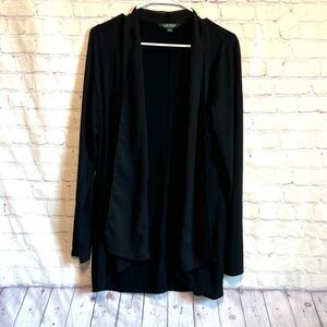 Lauren Ralph Lauren Open Front Black Cardigan Sheer Trim Panel Women's Size M