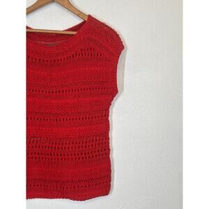 Lauren Ralph Lauren Open Knit Sweater Top PXS Red Short Sleeve Preppy Streetwear