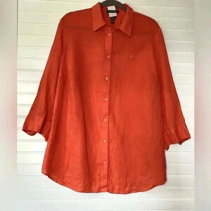 Lauren Ralph Lauren Orange 100% Linen 3/4 Sleeve Casual Button Up Shirt Size 1X