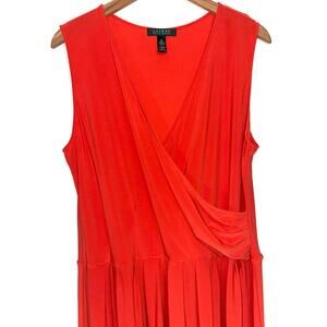 Lauren Ralph Lauren Orange Stretch Jersey Crossover Wrap Fit Flare Dress Size 1X