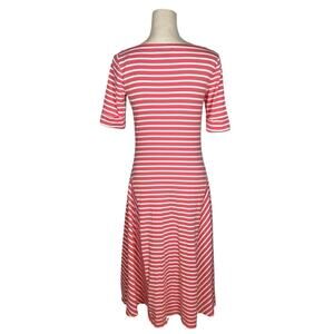 Lauren Ralph Lauren Orange White Stripe Midi T-Shirt Fit & Flare Dress Size: M