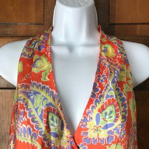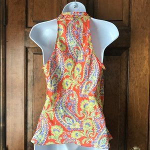 Lauren Ralph Lauren Orange w/Blue Yellow Green Paisley Sleeveless Top 6 Petite