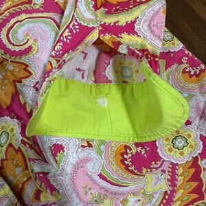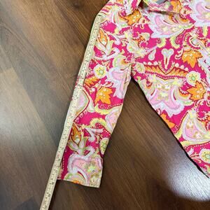 Lauren Ralph Lauren Paisley Cotton Button Up Neon Pink Green Funky Retro Sz M