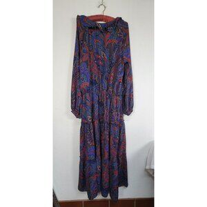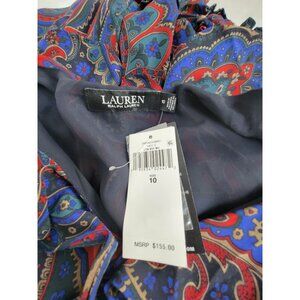 Lauren Ralph Lauren Paisley Georgette Long Sleeve Dress Size 10 Navy New $155