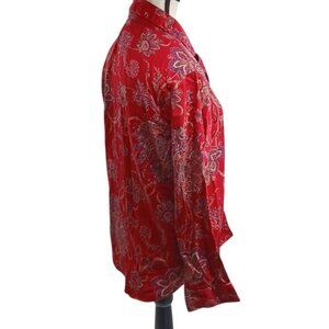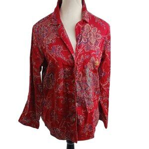 Lauren Ralph Lauren Pajama Top Womens Size M Red Floral Paisley Button Down