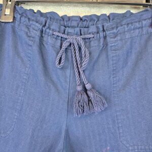Lauren Ralph Lauren Pants Womens Petite Medium Navy Cropped Linen Drawstring