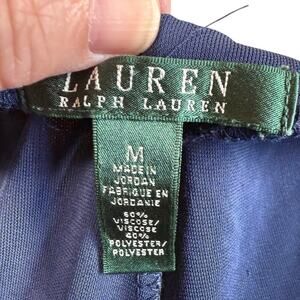 These Lauren Ralph Lauren Pants are a stylish and versatile addition to any woman's wardrobe. Featuring a wide-leg design with side lace accents, these dress pants are perfect for casual, formal, or business occasions. The high-rise waist and flat front give them a chic and polished look, while the nautical and preppy theme adds a touch of seaside sophistication. The blue color and solid pattern make them easy to mix and match with different tops for a variety of outfit options. Made from a blend of polyester and viscose, these pants are comfortable, durable, and easy to care for with a dry clean only requirement.