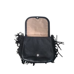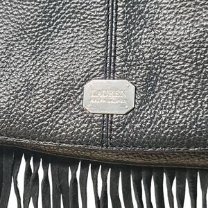 Lauren Ralph Lauren Pebble Leather Saddle Fringe Crossbody Bag Black GUC Flap