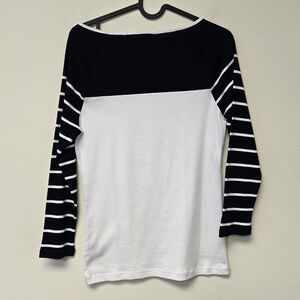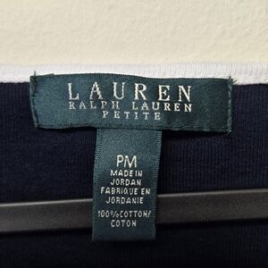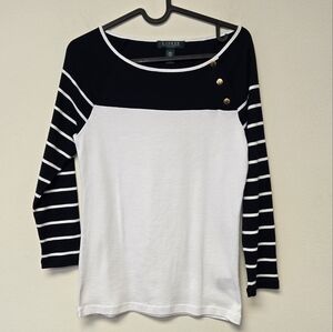 Lauren Ralph Lauren Petite 3/4 Sleeve Stripe Top White Navy PM