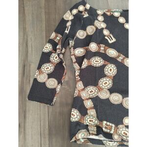Lauren Ralph Lauren Petite PL Top Brown Chain Print Stretch Long Sleeve Shirt. Condition is Pre-owned - Excellent.