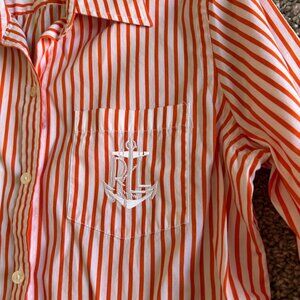 Lauren Ralph Lauren Petite Striped Cotton Button-Up Shirt /Embroidered Anchor
