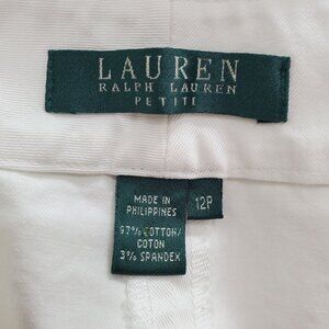 Lauren Ralph Lauren Petite White Stretch Cotton Casual Flat Front Pants Size 12P