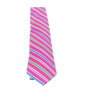 Lauren Ralph Lauren Pink Blue Green Stripe Preppy Academia Heritage 100% SilkTie