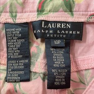 Chic pink pants with vibrant floral print. Perfect for a stylish look. Bottom side slits and 5 pockets! Lightweight too!