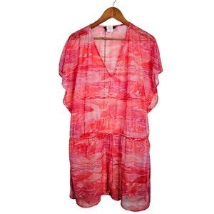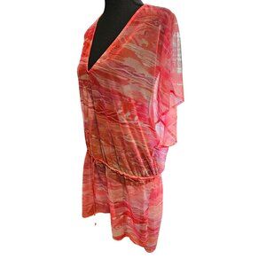 Lauren Ralph Lauren Pink Multicolor Sheer Tunic Cover Up - Size L Poolside, Beac