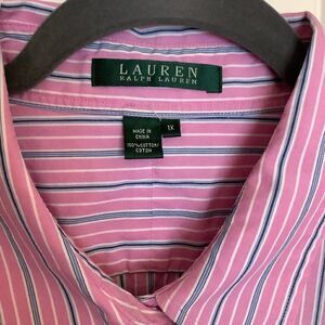 Very nice, great quality, pink striped button down with LRL monogram to sleeve cuff. 100% cotton. Size 1X