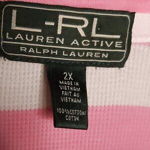 Lauren Ralph Lauren pink white striped thermal wide neck plus top 2X. Good condition (may have never been worn). Measurements are: 22” sleeve, 29” from shoulder to hem, and 23” from armpit to armpit.
