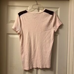 Lauren Ralph Lauren || Pink and Brown Tee || Faux Leather Capped Shoulders || XL