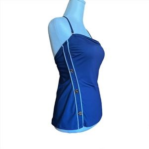 Lauren Ralph Lauren Piped Button Bandeau Tankini Swim Top - 10