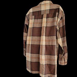 Lauren Ralph Lauren Plaid Flannel Long Shacket Brown/Beige Front Zipper