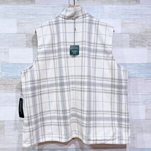 Lauren Ralph Lauren Plaid Fleece Vest Jacket Cream Gray LRL Womens Plus Size 3X