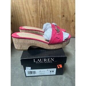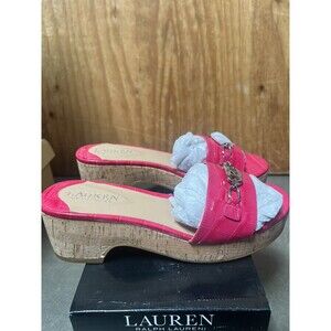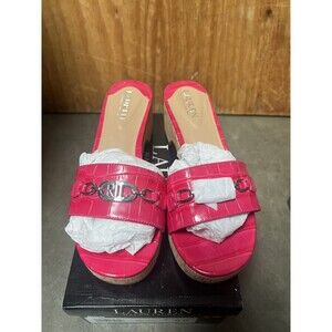 Lauren Ralph Lauren Platform Slide Sandals Roxanne Sz 8 Pink Croc