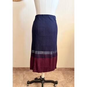 Lauren Ralph Lauren Pleated Midi Skirt Navy Burgundy Modal Silk Blend M