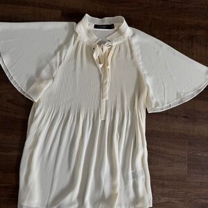 Elegant Lauren Ralph Lauren pleated blouse in size M, featuring a soft ivory color.