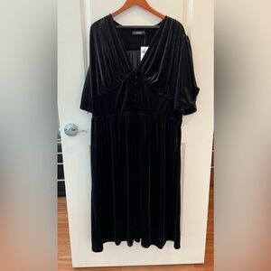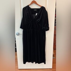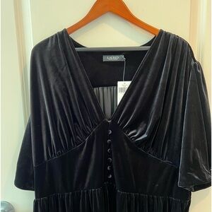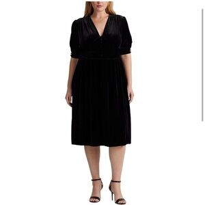 Lauren Ralph Lauren Plus Size Velvet Dress 3X Black V-Neck Button Half Sleeves