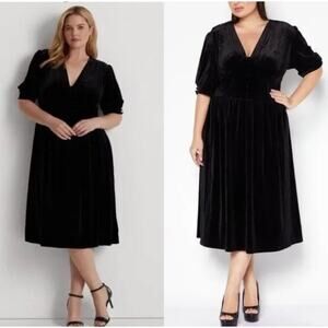Lauren Ralph Lauren Black Plus Size Velvet Puff Sleeve Midi Dress Size 3X New