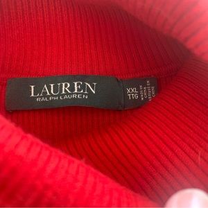 Classic and sophisticated Lauren Ralph Lauren lipstick red, ribbed turtleneck sweater, sz 2XL featuring the LRL monogram on the lower right side (see photo). This cotton blend pullover feels substantial and well-made. Great pre-owned condition. Measurements in photos. I’m happy to answer questions!