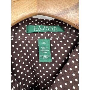 Lauren Ralph Lauren Polka Dot Brown plus Shirt size 3X Cotton Womens Blouse