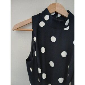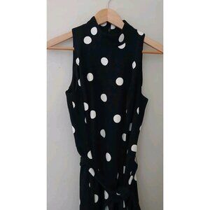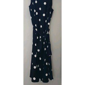 Lauren Ralph Lauren Polka Dot Sleeveless Midi Dress Size 10 Black White Belt