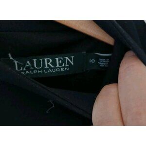 Lauren Ralph Lauren Polka Dot Sleeveless Midi Dress. Size 10. Black and white polka dots. Belt at waist. Fit and flare. In nice, preowned condition. No flaws noted. Measures approximately 17" pit to pit, 43" shoulder to hem.