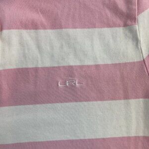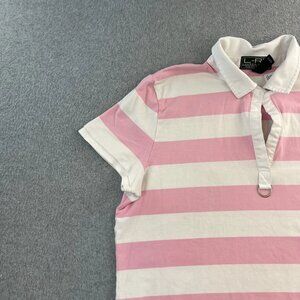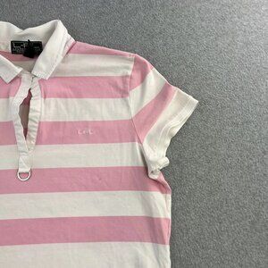 Lauren Ralph Lauren Polo Shirt Womens XL Pink White Striped Collared Rugby Top