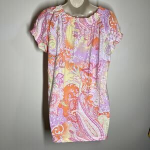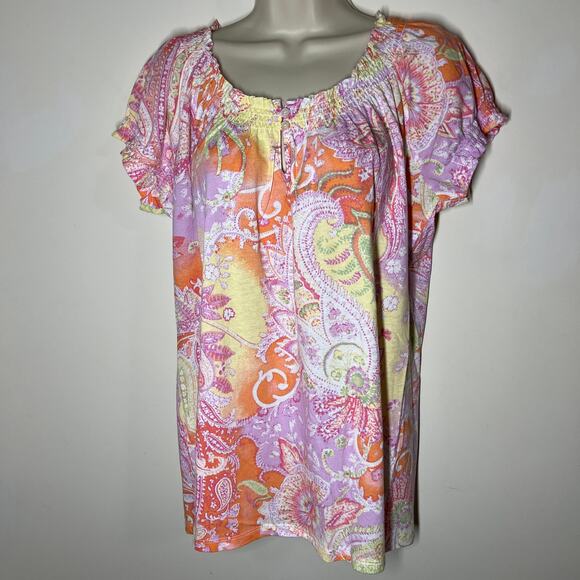Lauren Ralph Lauren Puff Sleeve Paisley Print Peasant Blouse Pink Combo Size Medium