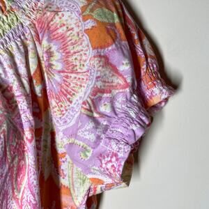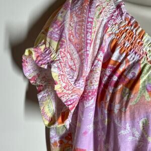 Lauren Ralph Lauren Puff Sleeve Paisley Print Peasant Blouse Pink Combo Size Med