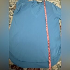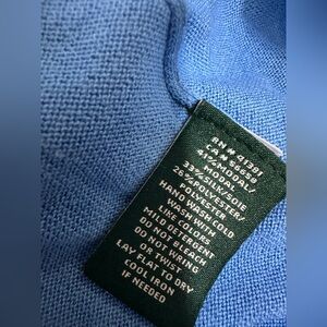 Lauren Ralph Lauren Pullover Knit V-Neck Blue Sweater Womens Sz L Modal Silk