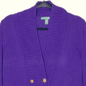 Lauren Ralph Lauren Purple Cardigan with Gold Buttons, Small Petite SP