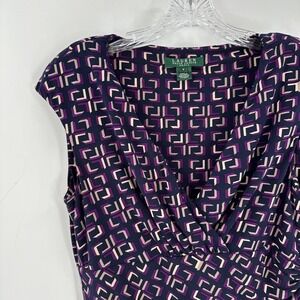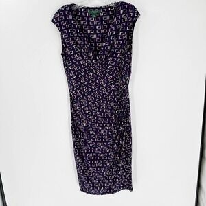 Lauren Ralph Lauren Purple Geometric Knee Length Sheath Dress Size 8 FLAWED
