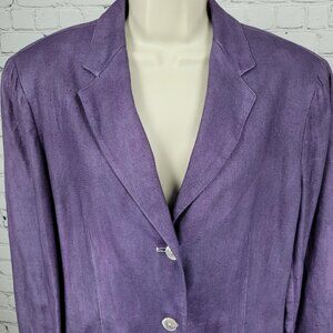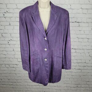 Lauren Ralph Lauren Purple Linen Buttoned Lined Notch Blazer Jacket Size 14