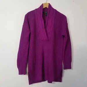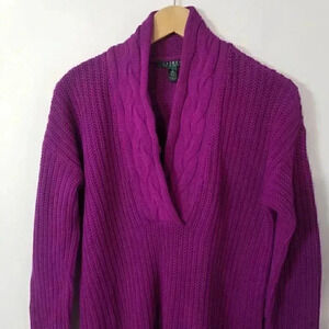 Lauren Ralph Lauren Purple Shawl Collar Cable Knit Pullover Sweater