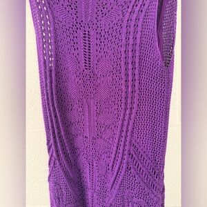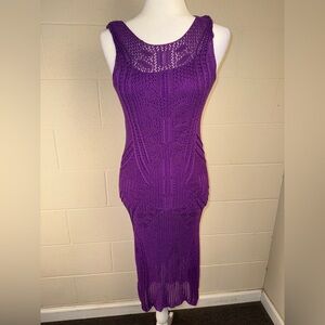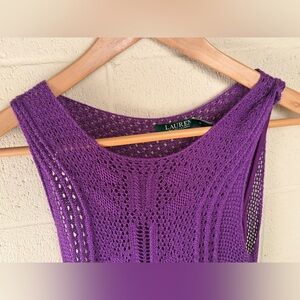 Lauren Ralph Lauren Purple Sleeveless Open Knit Mesh Midi Dress Size Small