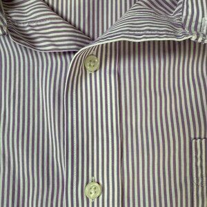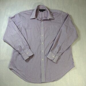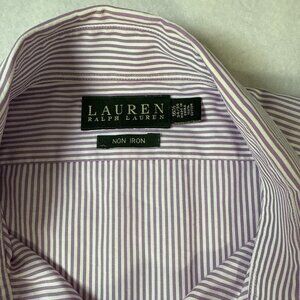 Lauren Ralph Lauren Purple White Striped Poplin Casual Button Down Shirt 16 1/2