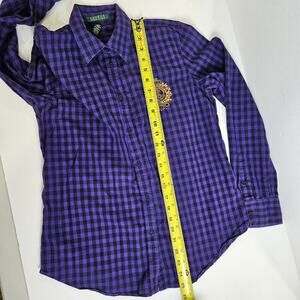 Lauren Ralph Lauren Purple and Black Gingham Checked Button Up Gold Crested M