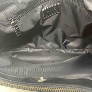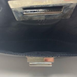 Lauren Ralph Lauren Purse Black Patent Leather Lined Inside and Outside Pockets. Silver hardware, turn style closure. Good pre-owned condition. Some gold specks on front left. See last picture for details. See photos for measurements. Ships quickly from smoke-free home.
