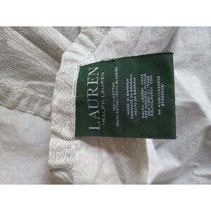 Lauren Ralph Lauren Queen Flat sheet Gray blue paisley cotton Cottage HOLE