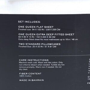 • Extra deep fitted sheet fits mattresses up to 18 inches