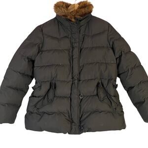Lauren Ralph Lauren Quilted Down Filled Puffer Coat Womens Large Black Fur Trim