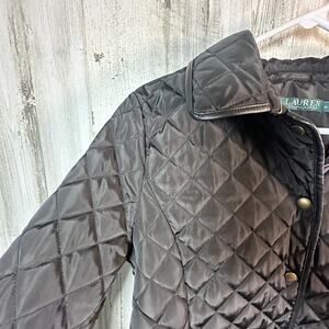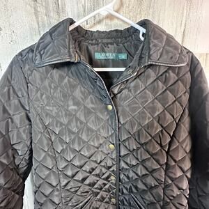 Lauren Ralph Lauren Quilted Jacket | Black | Faux Leather Trim | Snap | Size M